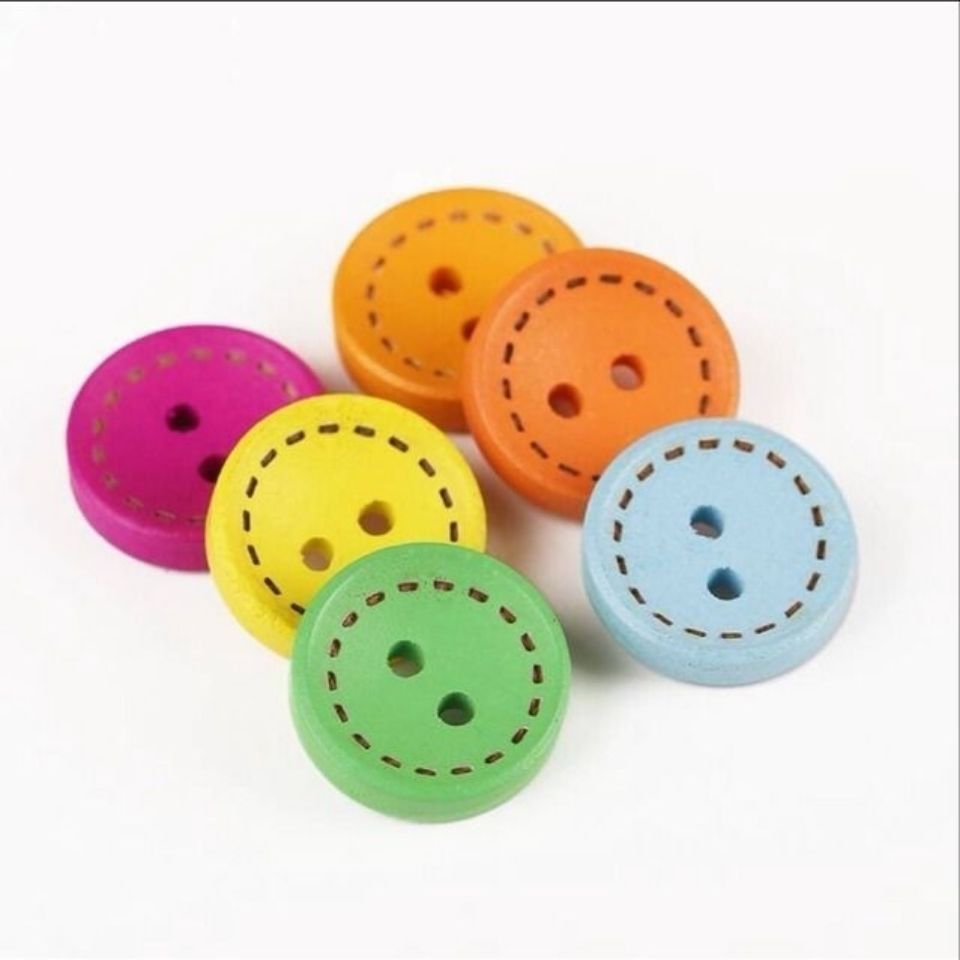 Elevate your creative projects with these delightful 15mm color-dotted wooden buttons. Crafted with precision, these buttons combine the natural beauty of wood with a touch of whimsy. Whether you’re designing garments, accessories, or home decor items, these buttons are the perfect addition to infuse your creations with a playful and eye-catching charm. Upgrade your crafting experience with these versatile and visually appealing buttons.