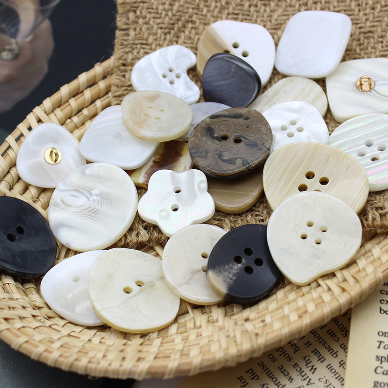 Special-shaped resin button two-eye round button high-grade irregular decorative button dress shirt white shell button