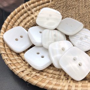Enhance the sophistication of your dress shirts with our exclusive collection of special-shaped resin buttons. These high-grade buttons boast a captivating white shell design that adds a touch of elegance to any attire. With their irregular shape and two-eye feature, they serve as unique and stylish decorative adornments, elevating your fashion statement to a whole new level